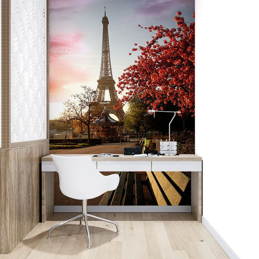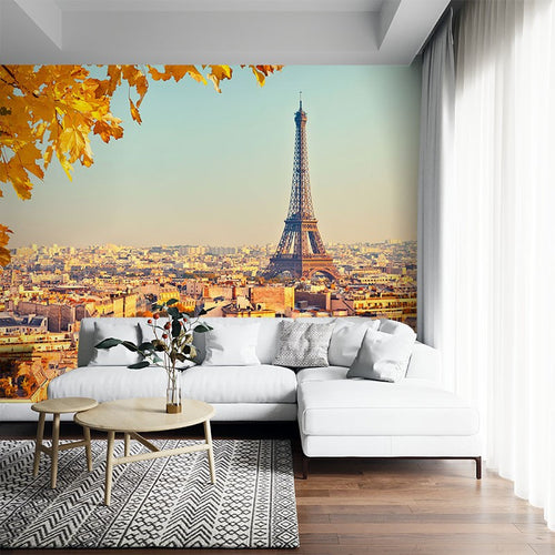 Eiffel Tower City Landmarks Orange Wallpaper Mural,Self-Adhesive Peel And Stick 3D Wall Paper,Australian Company Bedroom Wall Decor