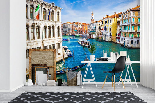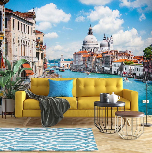 Venice City Landmarks Blue Wallpaper Mural,Self-Adhesive Peel And Stick 3D Wall Decal,Australian Company Bedroom Wall Decor