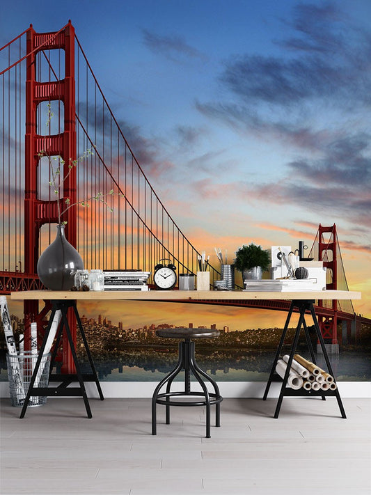 Golden Gate Bridge Landmarks Red Wallpaper Mural,Self-Adhesive Peel And Stick 3D Wall Mural,Designer Australian Company Wall Decor