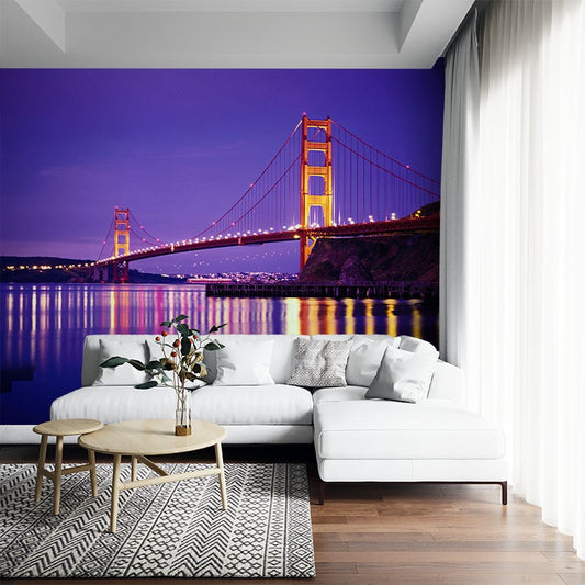 Bridge At Night City Landmarks Purple Wallpaper Mural,Self-Adhesive Peel And Stick 3D Wall Decor,Designer Australian Company Wall Decor
