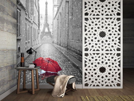 Umbrella Alley City Landmarks Red Wallpaper Mural,Self-Adhesive Peel And Stick 3D Wall Art,Australian Company Designer Wall Decor