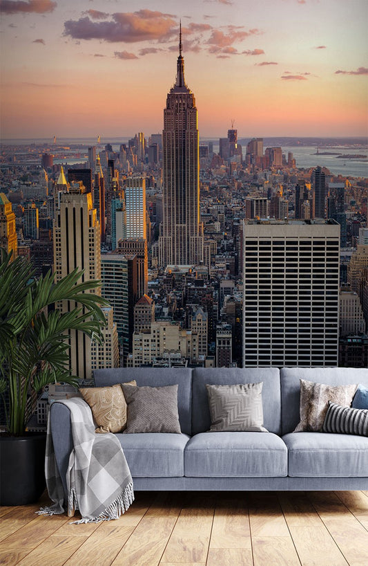 Ny Sunset City Landmarks Creamy Wallpaper Mural,Self-Adhesive Peel And Stick 3D Wall Mural,Designer Bedroom Wall Decor