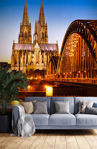 Catholic Cathedral City Landmarks Orange Wallpaper Mural,Self-Adhesive Peel And Stick 3D Wall Art,Australian Company Designer Wall Decor