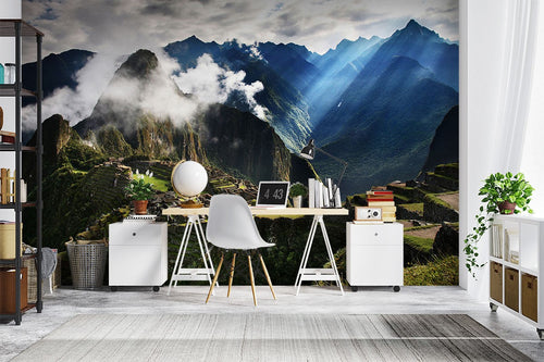 Machu Picchu City Landmarks Green Wallpaper Mural,Self-Adhesive Peel And Stick 3D Wall Mural,Australian Company Bedroom Wall Decor