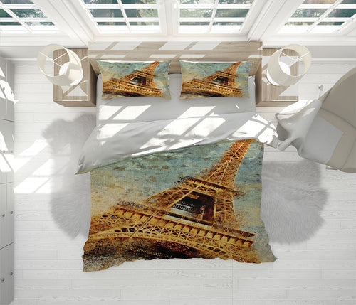 Paris Eiffel Tower Duvet Cover Set W Pillow Cover, Orange City Landmarks 3D Quilt Cover, Single Double Queen King Size Doona Cover