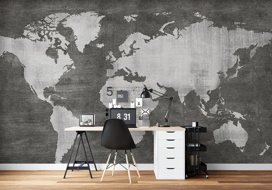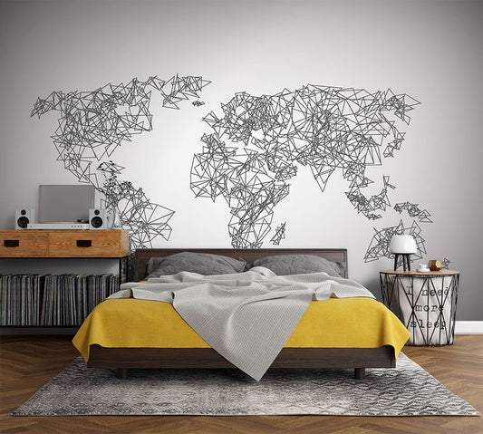 Geometric Map Maps World Map Gray Wallpaper Mural,Self-Adhesive Peel And Stick 3D Wall Mural,Designer Bedroom Wall Decor