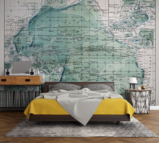 Pacific Map Maps Vintage Map Green Wallpaper Mural,Self-Adhesive Peel And Stick 3D Wall Art,Bedroom Designer Wall Decor