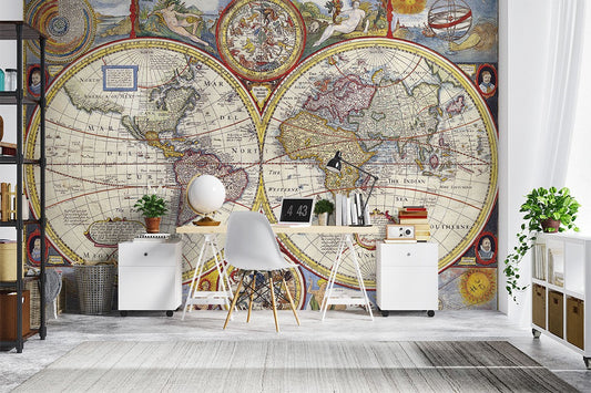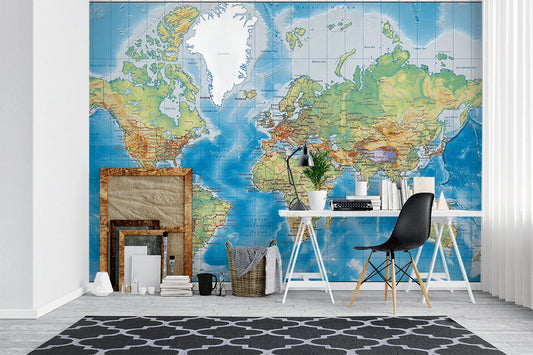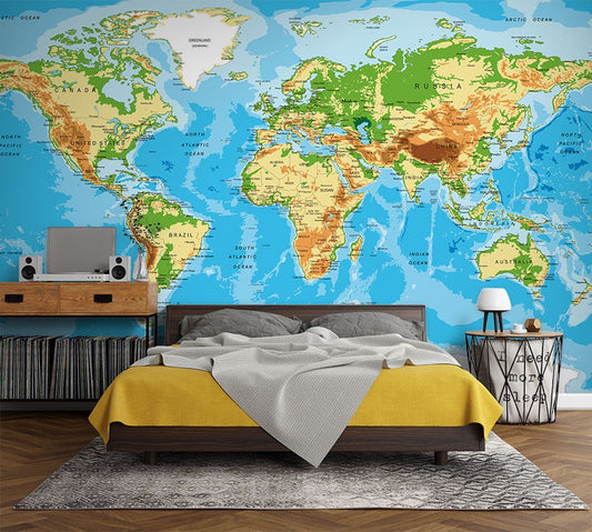 World Map Maps World Map Bright Wallpaper Mural,Self-Adhesive Peel And Stick 3D Wall Art,Removable Designer Wall Decor
