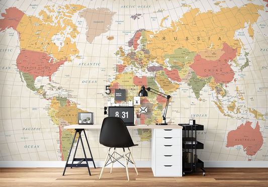 World Map Maps World Map Creamy Wallpaper Mural,Self-Adhesive Peel And Stick 3D Wall Decal,Designer Australian Company Wall Decor
