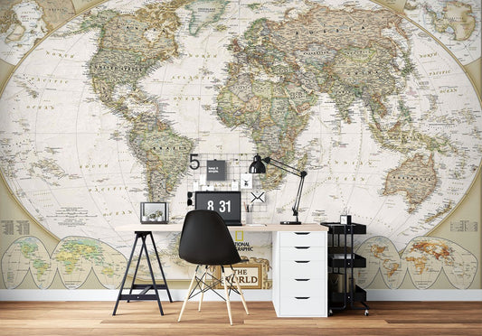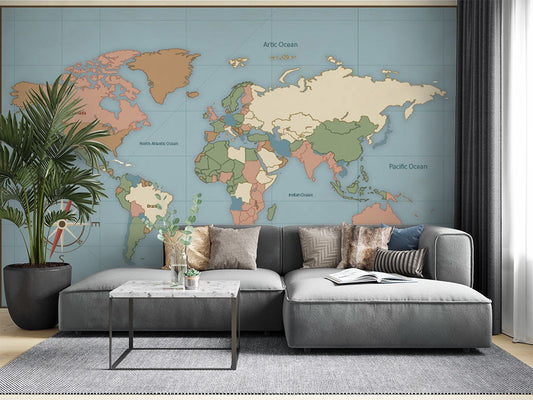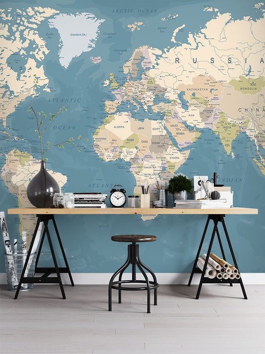 World Map Maps World Map Neutral Wallpaper Mural,Self-Adhesive Peel And Stick 3D Wall Mural,Australian Company Bedroom Wall Decor