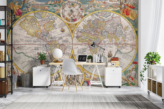 Globe Maps World Map Brown Wallpaper Mural,Self-Adhesive Peel And Stick 3D Wall Decor,Bedroom Designer Wall Decor