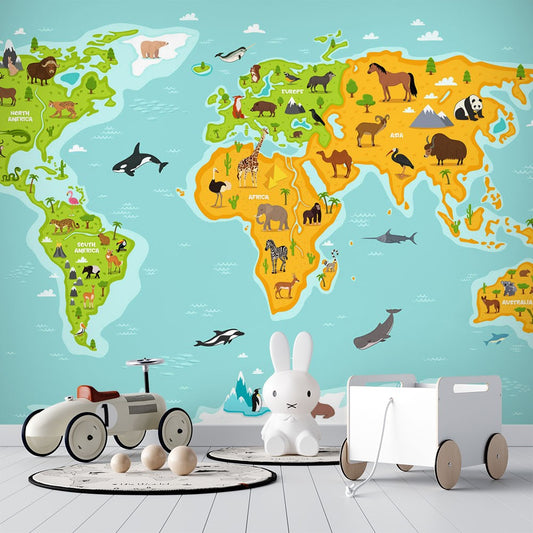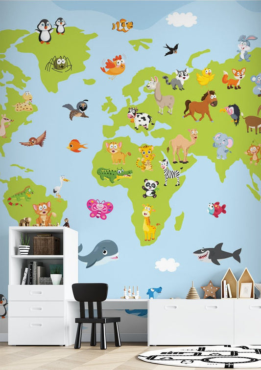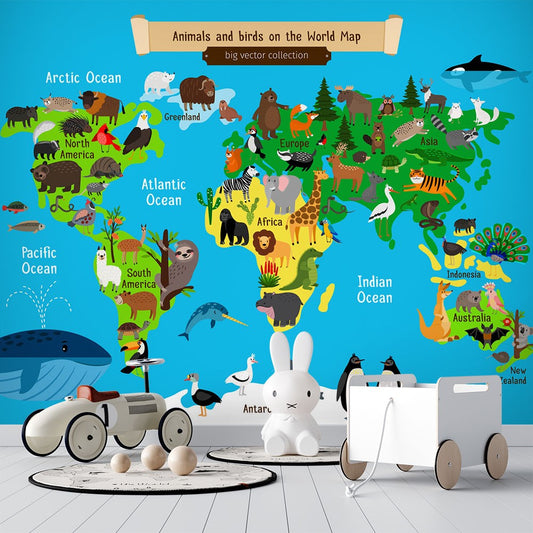 Animals Birds Kids Map Colorful Wallpaper Mural