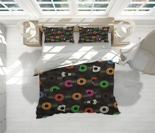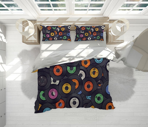 Records Vinyl Duvet Cover Set W Pillow Cover, Dark Hobby Music 3D Quilt Cover, Single Double Queen King Size Doona Cover