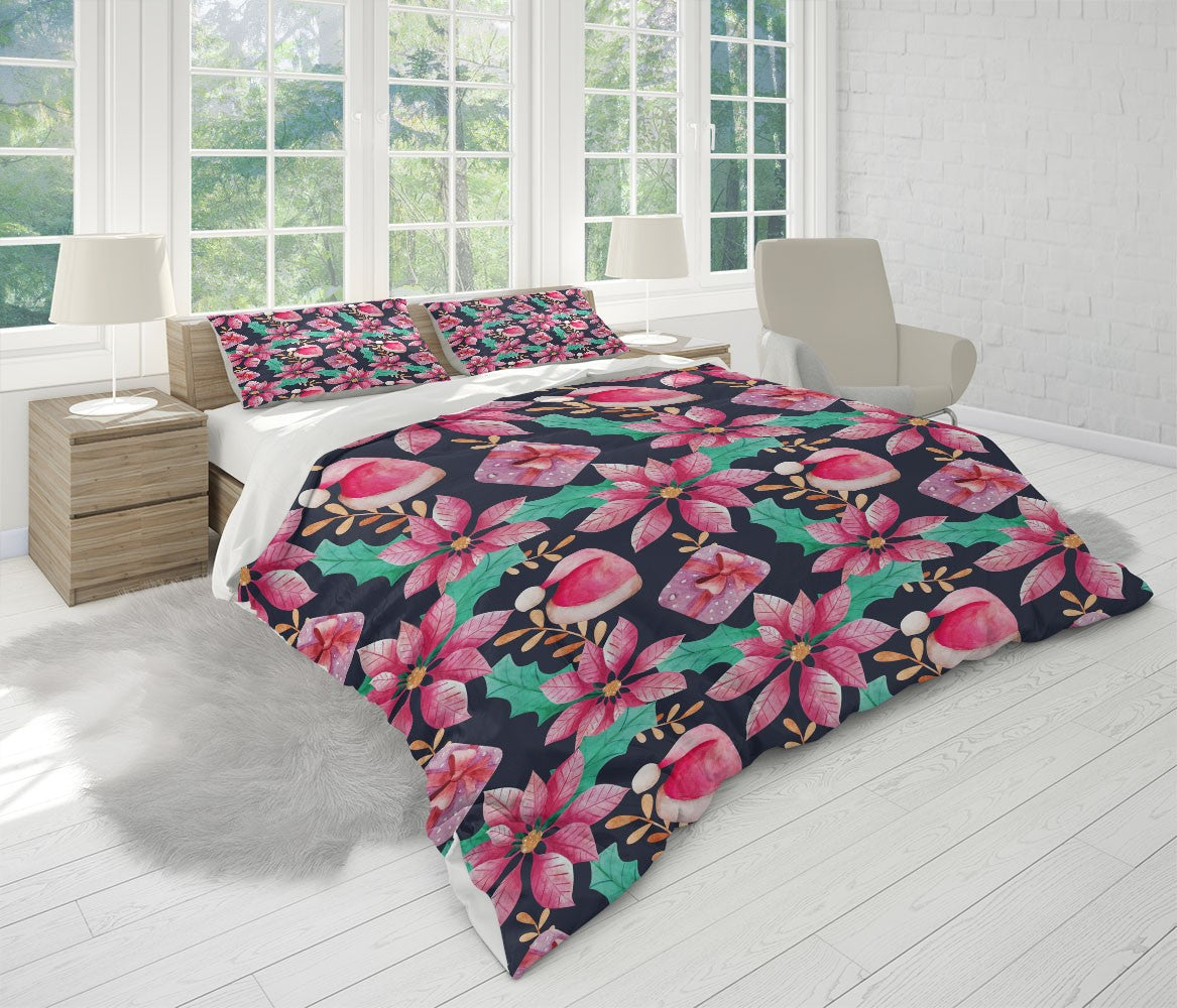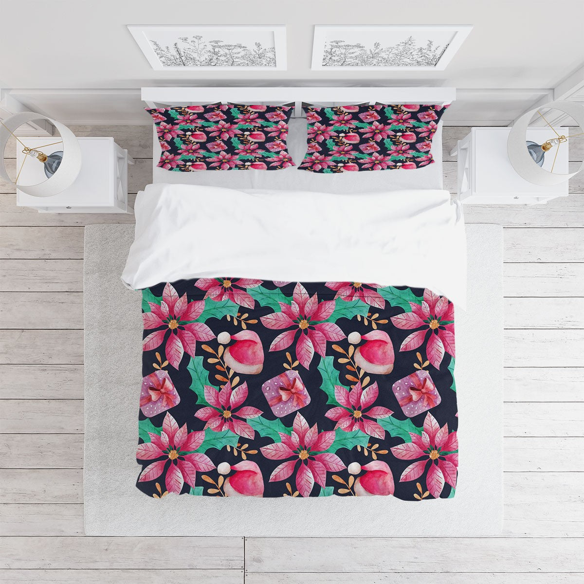 Christmas Hat Gift Duvet Cover Set W Pillowcases, Red Texture Patterns 3D Quilt Cover, 3Pc Single Double Queen King Size Doona Cover
