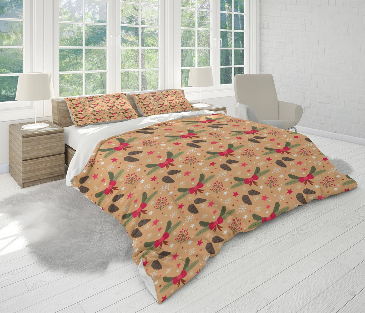 Christmas Pine Cones Duvet Cover Set W Pillowcases, Red Floral Patterns 3D Quilt Cover, 3Pc Single Double Queen King Size Doona Cover