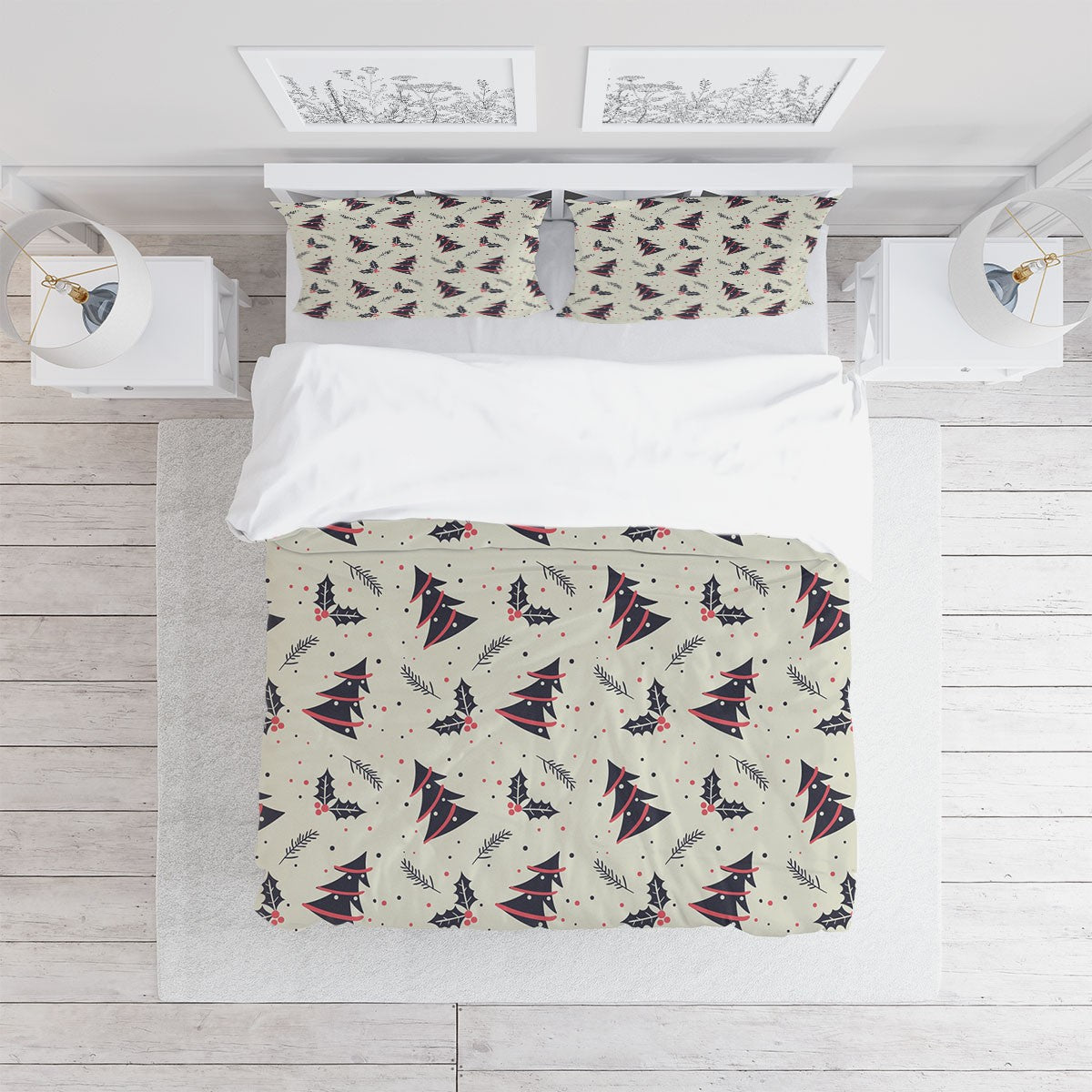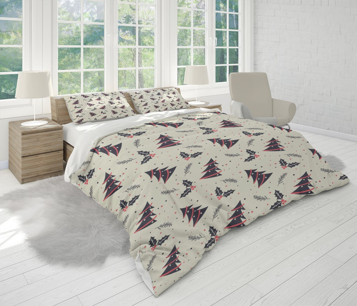Christmas Tree Leaf Duvet Cover Set W Pillowcases, Creamy Floral Patterns 3D Quilt Cover, 3Pc Single Double Queen King Size Doona Cover