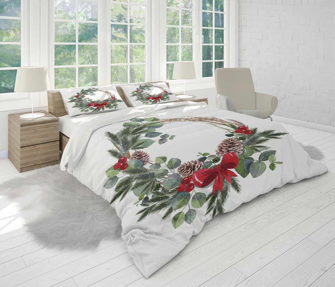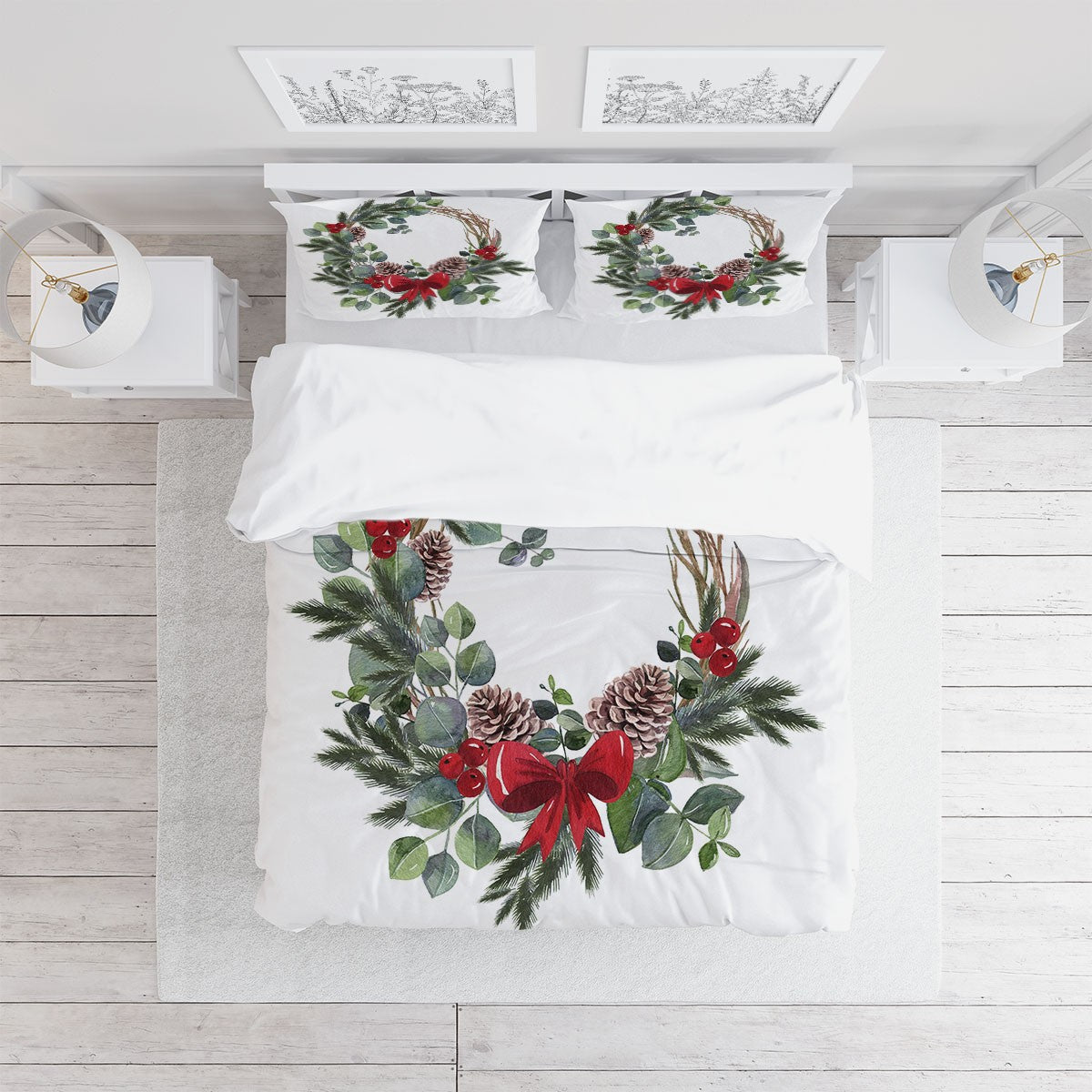 Wreath Garland Decor Duvet Cover Set W Pillowcases, White Floral Patterns 3D Quilt Cover, 3Pc Single Double Queen King Size Doona Cover