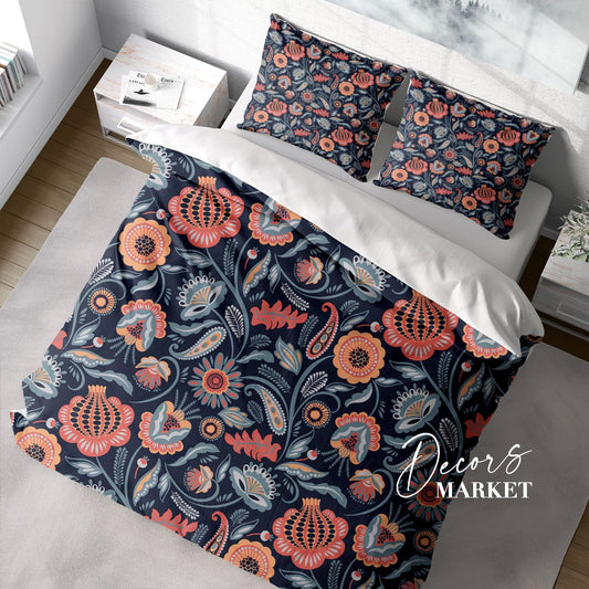 Indian Flowers Duvet Cover Set w Pillowcases, Colorful Floral Patterns 3D Quilt Cover, 3pc Single Double Queen King Size Doona Cover