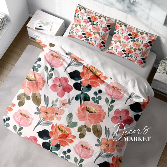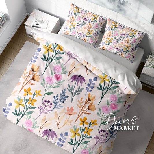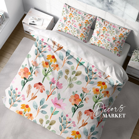Watercolor Sweet Duvet Cover Set w Pillowcases, Colorful Floral Patterns 3D Quilt Cover, 3pc Single Double Queen King Size Doona Cover