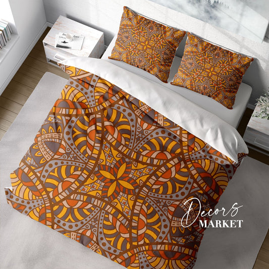 Indian Totem Bohemia Duvet Cover Set w Pillowcases, Yellow Texture Patterns 3D Quilt Cover, 3pc Single Double Queen King Size Doona Cover