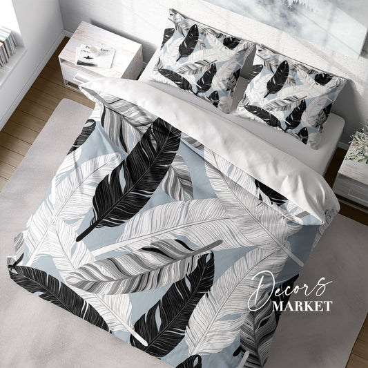 Feather Sketch Duvet Cover Set w Pillowcases, Black and White Texture Patterns 3D Quilt Cover, 3pc Single Double Queen King Size Doona Cover