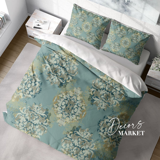 Dreamy Damask Duvet Cover Set w Pillowcases, Green Mirage Floral Patterns 3D Quilt Cover, 3pc Single Double Queen King Size Doona Cover