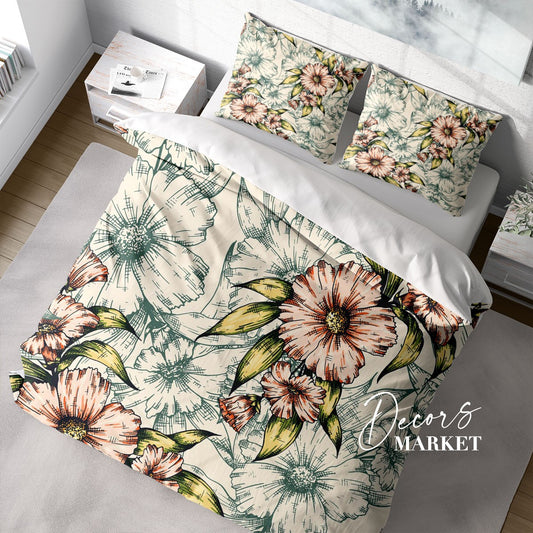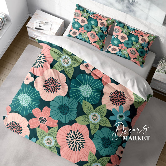 Retro Flower Duvet Cover Set w Pillowcases, Colorful Floral Patterns 3D Quilt Cover, 3pc Single Double Queen King Size Doona Cover