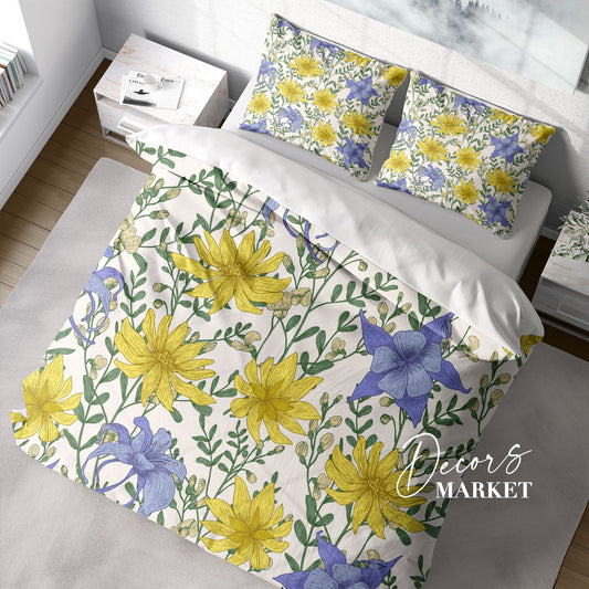 Wildflowers Chamomile Duvet Cover Set w Pillowcases, Yellow Floral Patterns 3D Quilt Cover, 3pc Single Double Queen King Size Doona Cover