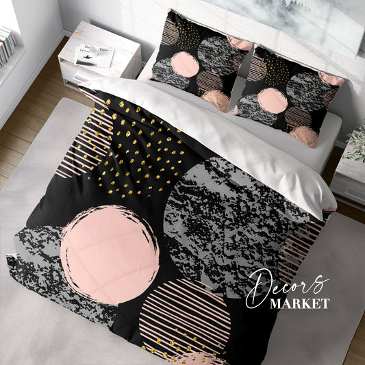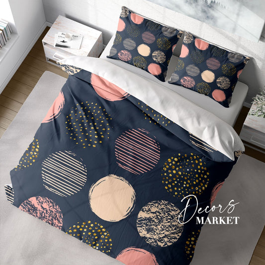 Polka Dots Duvet Cover Set w Pillowcases, Black Texture Patterns 3D Quilt Cover, 3pc Single Double Queen King Size Doona Cover