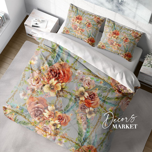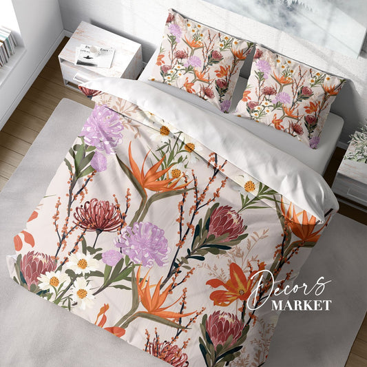 Oriental Botanical Duvet Cover Set w Pillowcases, Pastel Floral Patterns 3D Quilt Cover, 3pc Single Double Queen King Size Doona Cover