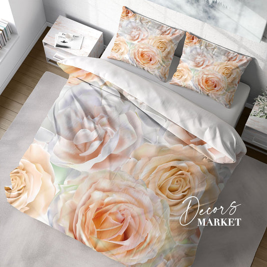 Pastel Blossom Duvet Cover Set w Pillowcases, Creamy Floral Buds Patterns 3D Quilt Cover, 3pc Single Double Queen King Size Doona Cover