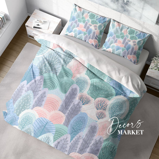 Pastel Cartoony Cactus Duvet Cover Set w Pillowcases, Green Floral Patterns 3D Quilt Cover, 3pc Single Double Queen King Size Doona Cover