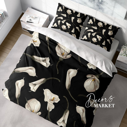 Dark Calla Lilies Duvet Cover Set w Pillowcases, Pink Floral Patterns 3D Quilt Cover, 3pc Single Double Queen King Size Doona Cover