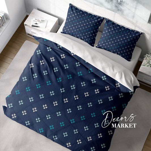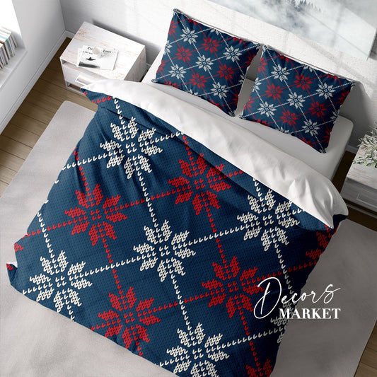 Holiday Christmas Duvet Cover Set w Pillowcases, Blue Texture Patterns 3D Quilt Cover, 3pc Single Double Queen King Size Doona Cover