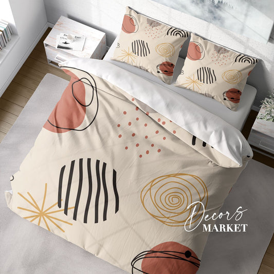 Illustration Sketch Duvet Cover Set w Pillowcases, Creamy Texture Patterns 3D Quilt Cover, 3pc Single Double Queen King Size Doona Cover