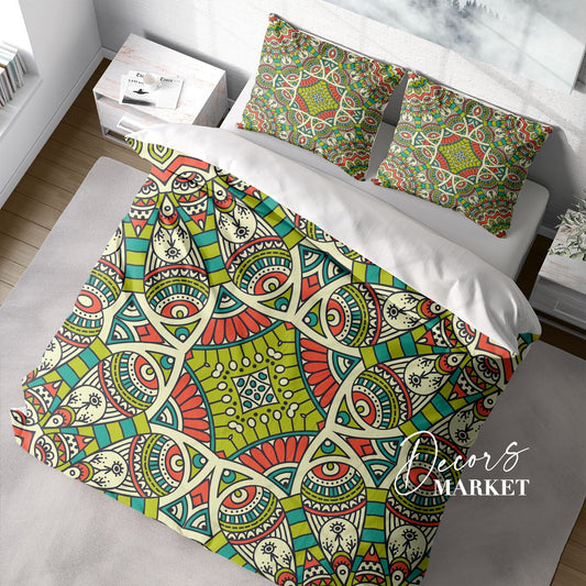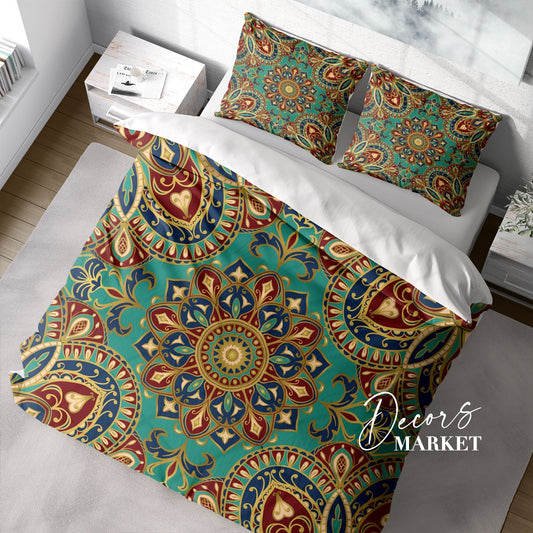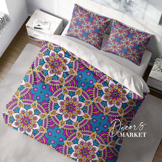 Indian Mandala Duvet Cover Set w Pillowcases, Colorful Floral Patterns 3D Quilt Cover, 3pc Single Double Queen King Size Doona Cover