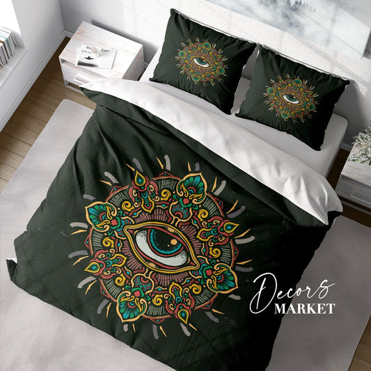 Esoteric Eye Mystic Duvet Cover Set w Pillowcases, Black Texture Patterns 3D Quilt Cover, 3pc Single Double Queen King Size Doona Cover