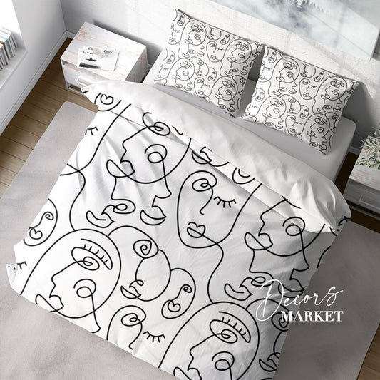 Abstract Art Face Duvet Cover Set w Pillowcases, White Texture Patterns 3D Quilt Cover, 3pc Single Double Queen King Size Doona Cover