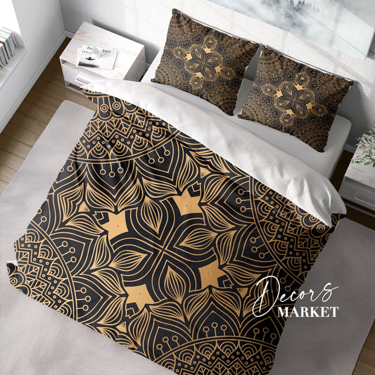 Indian Mandala Duvet Cover Set w Pillowcases, Dark Floral Patterns 3D Quilt Cover, 3pc Single Double Queen King Size Doona Cover
