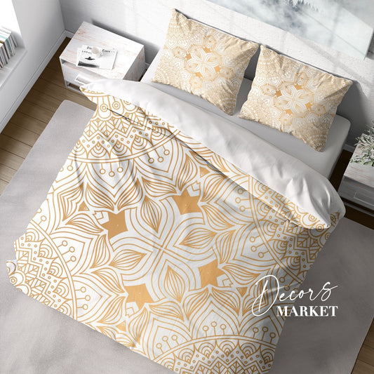 Indian Mandala Duvet Cover Set w Pillowcases, Yellow Floral Patterns 3D Quilt Cover, 3pc Single Double Queen King Size Doona Cover