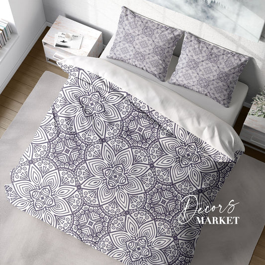 Indian Mandala Duvet Cover Set w Pillowcases, Purple Floral Patterns 3D Quilt Cover, 3pc Single Double Queen King Size Doona Cover