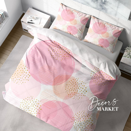 Polka Dots Leopard Duvet Cover Set w Pillowcases, Pink Texture Patterns 3D Quilt Cover, 3pc Single Double Queen King Size Doona Cover