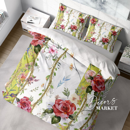 Watercolor Rose Vine Duvet Cover Set w Pillowcases, White Floral Patterns 3D Quilt Cover, 3pc Single Double Queen King Size Doona Cover