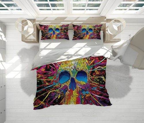 Skull Colorful Duvet Cover Set W Pillow Cover, Multicolour Graffiti Graffiti 3D Quilt Cover, Single Double Queen King Size Doona Cover