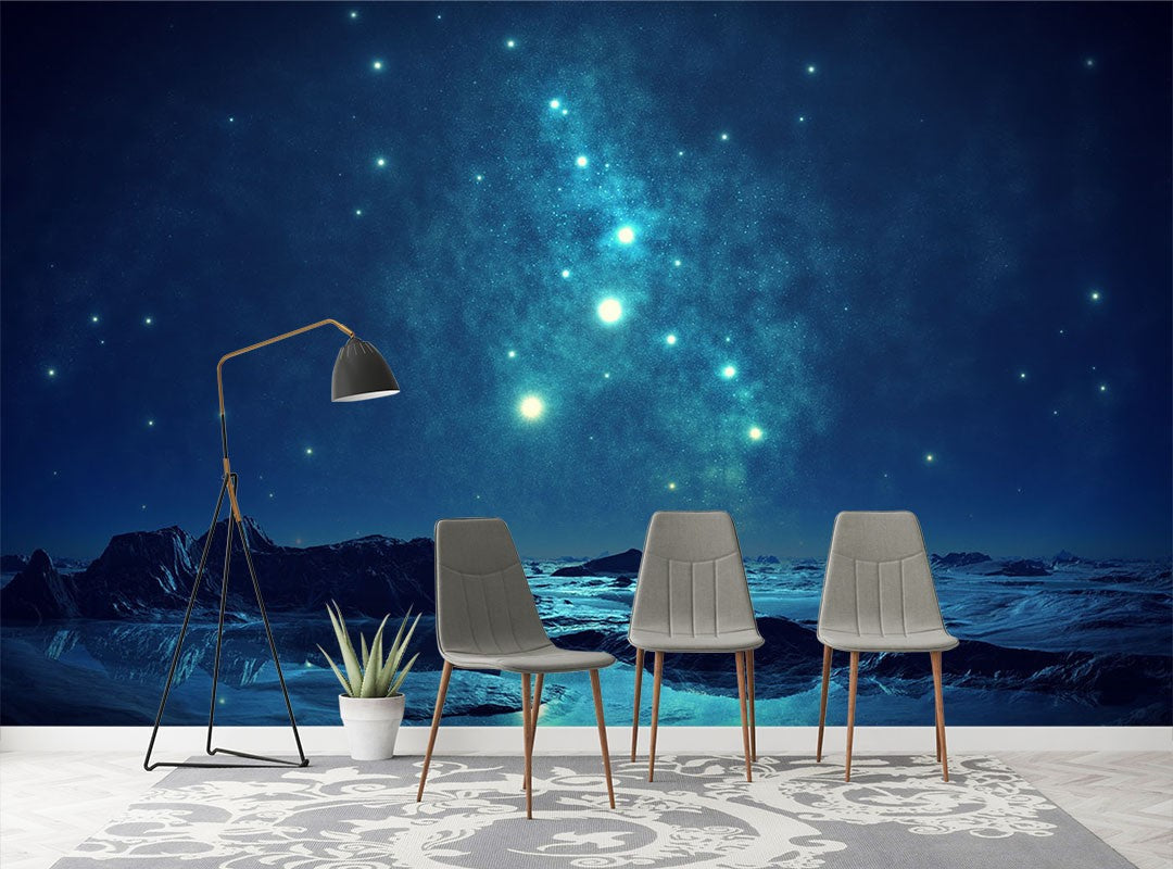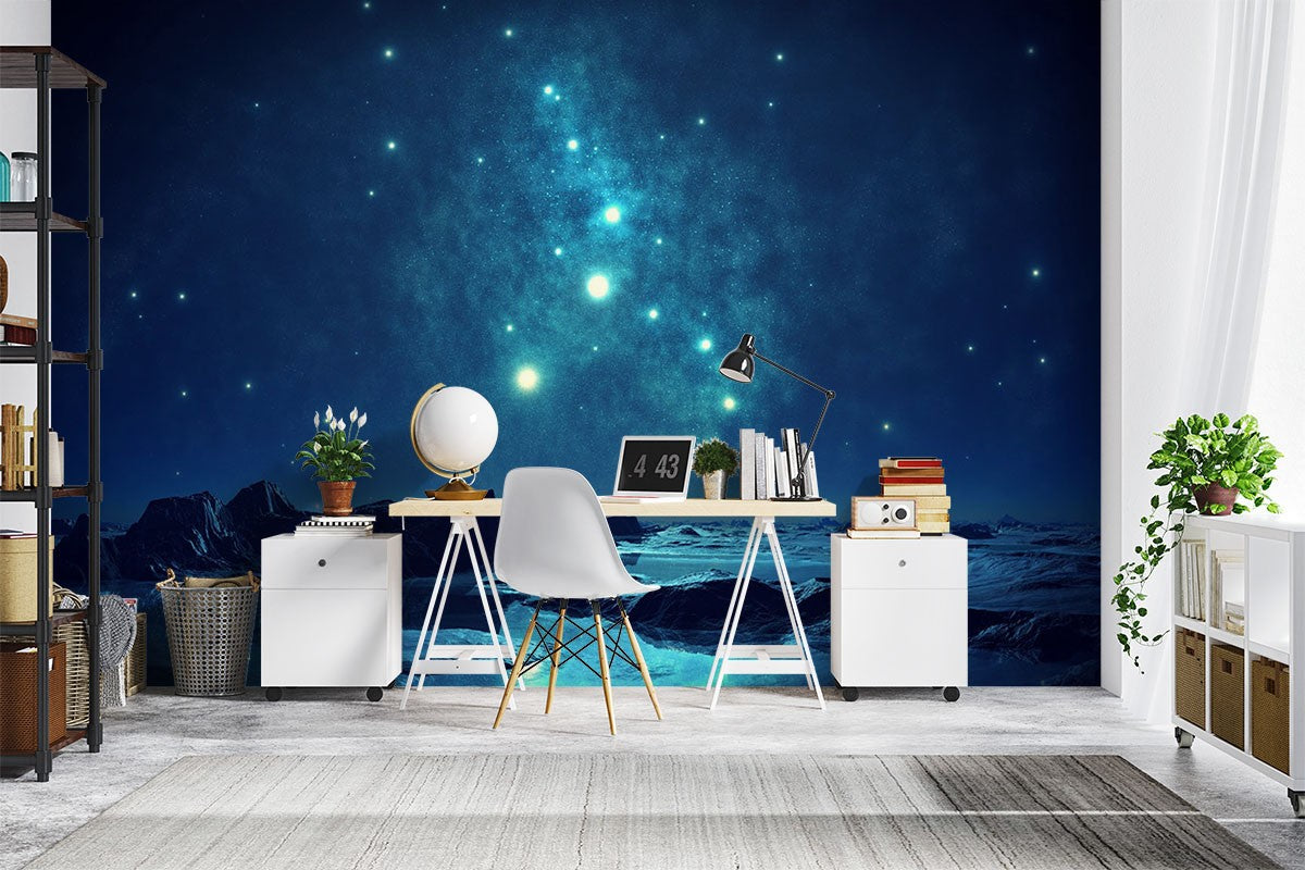 Alien Terrain Nature Space Blue Wallpaper Mural,Self-Adhesive Peel And Stick 3D Wall Paper,Removable Bedroom Wall Decor