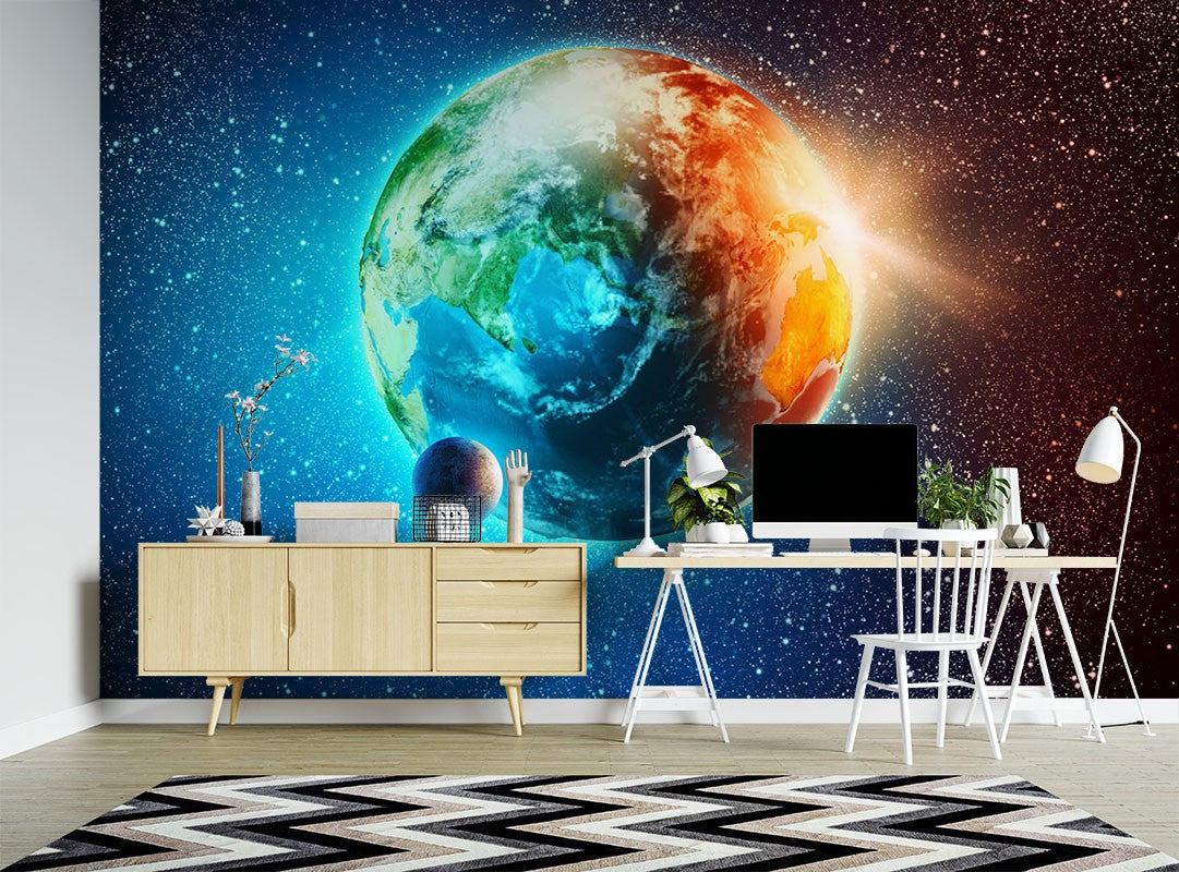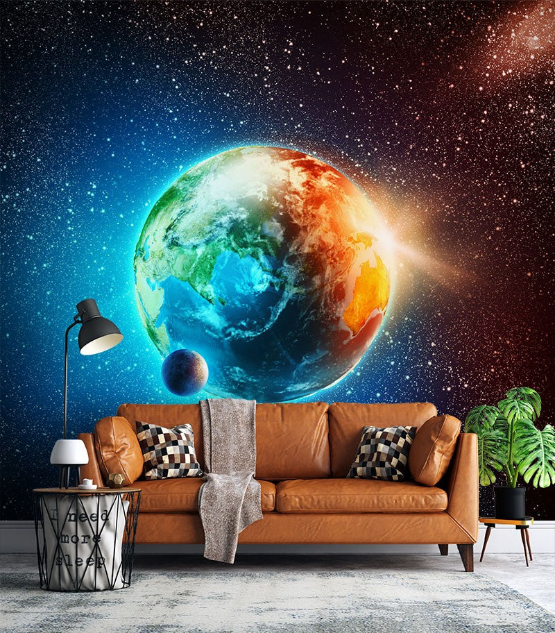 Earth Moon Stars Nature Space Blue Wallpaper Mural,Self-Adhesive Peel And Stick 3D Wall Decal,Designer Australian Company Wall Decor