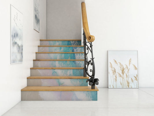 Sea Sky Nature Blue Stair Riser Decals, Waterproof Removable Staircase Decals, Vinyl Peel And Stick Stairs Decal Stickers