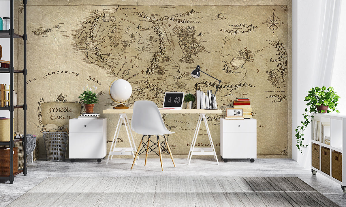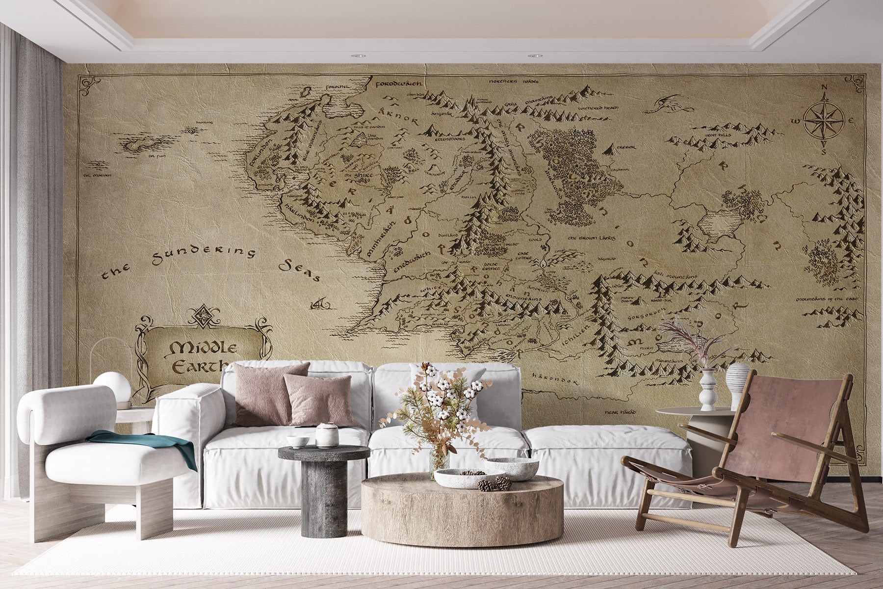 Lotr Map Art Fantasy Brown Wallpaper Mural,Self-Adhesive Peel And Stick 3D Wall Decor,Removable Designer Wall Decor