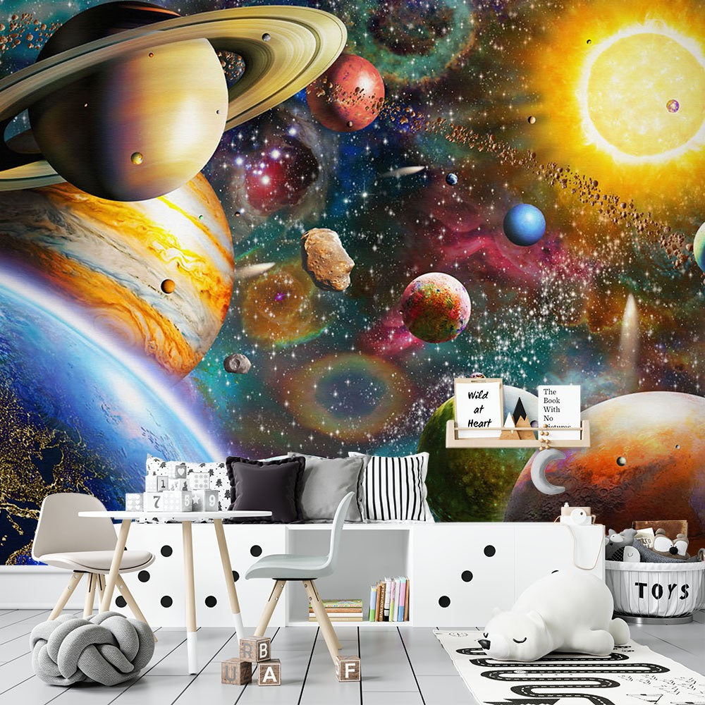 Planet Meteorite Kids Space Bright Wallpaper Mural,Self-Adhesive Peel And Stick 3D Wall Decal,Bedroom Designer Wall Decor