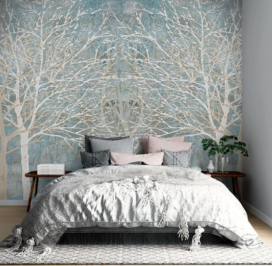 Branches Woods Art Watercolor Blue Wallpaper Mural,Self-Adhesive Peel And Stick 3D Wall Mural,Removable Designer Wall Decor
